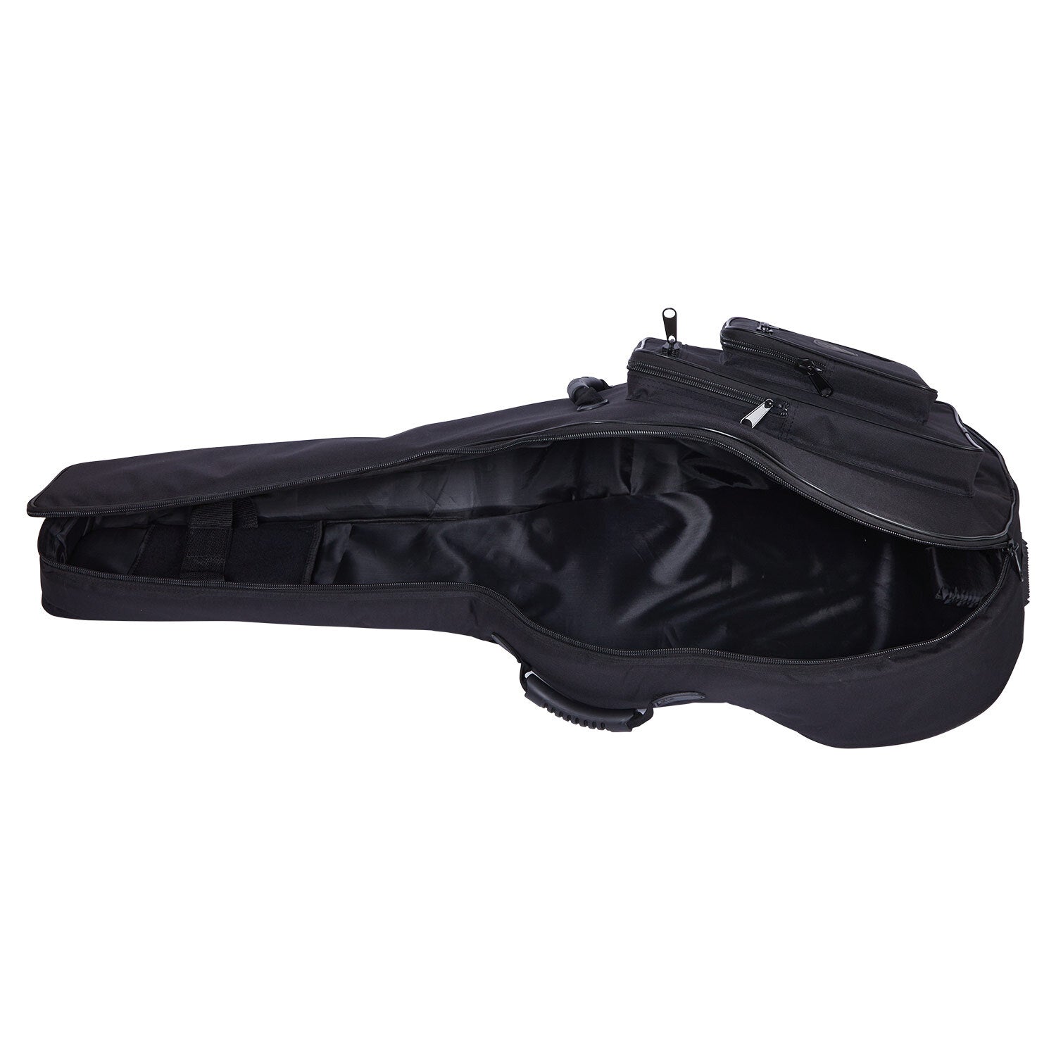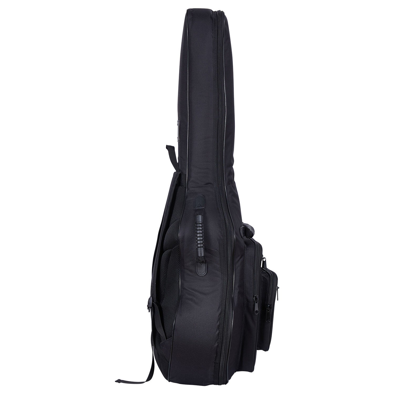 High Grade large acoustic guitar, fits 41'' dreadnought, 12 strings and jumbo size guitars. Heavy duty Nylon fabric with hard-wearing rubber pads and handle. Your guitar will be safe and sound with the thick 20mm padding. This bag features 4 external pockets for storing all your accessories, even your A4 manuscript book!