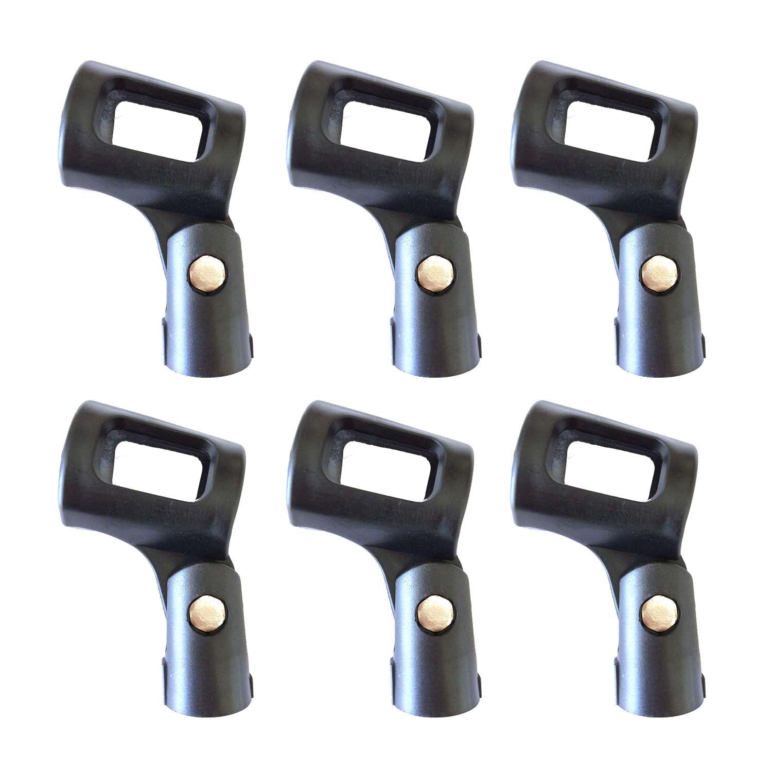 6 Pieces of Plastic mic clip with a standard 5/8'' thread. These clips will fit a standard vocal mic (like an SM58 or most typical vocal mics)