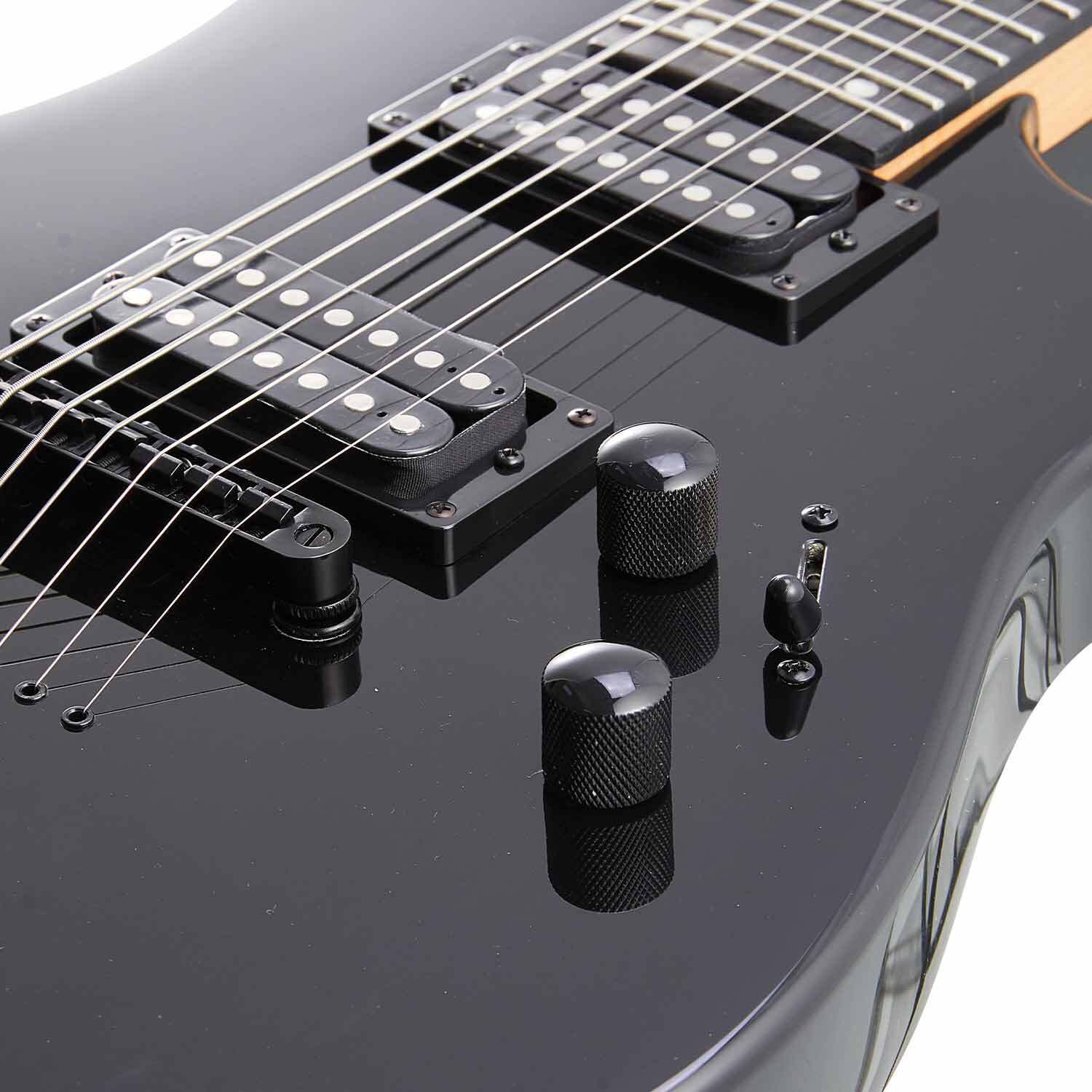 The Artist Spiritus7 is the perfect introductory 7-string guitar to take you on your journey into the world of low-tuned Metal and Djent. This guitar has a black gloss Poplar body, a Canadian Maple Bolt-on neck, a black anodized tune-o-matic bridge, and a string-thru-ferrule tail for the best sustain possible. The controls are simple and effective - 1 volume, 1 Tone, and a 3-way selector.