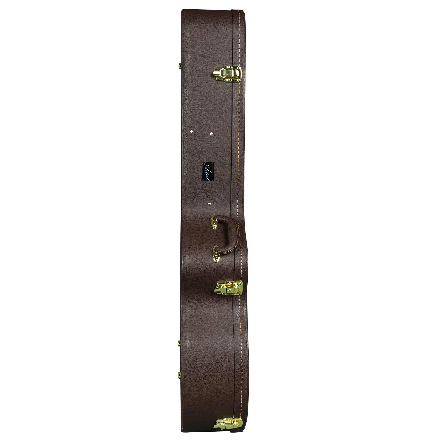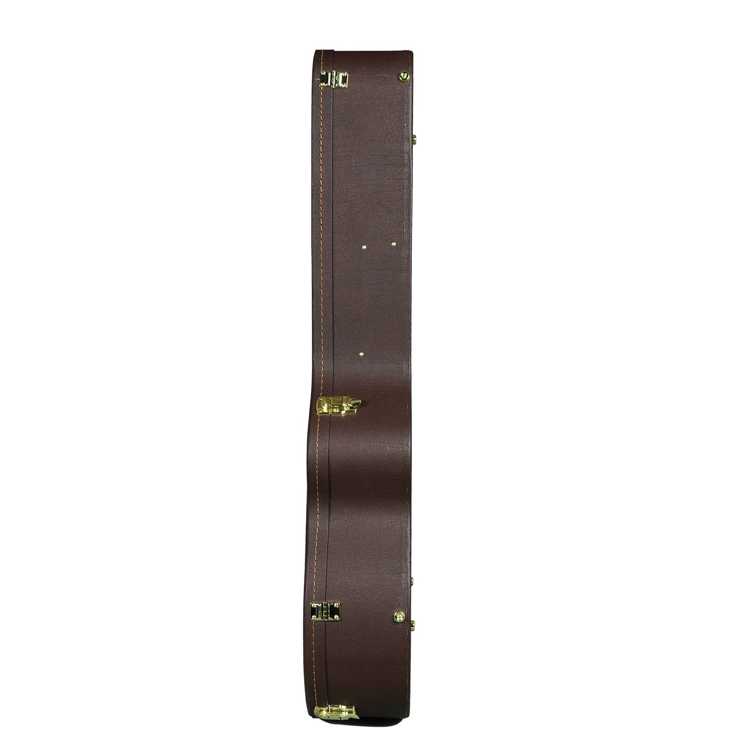 This Hard Case will fit a Jumbo Guitar and keep it safe and sound, It has a sturdy wooden construction with a lockable Latch (the key is inside the case). It has a great little compartment for all your accessories and spare strings.
