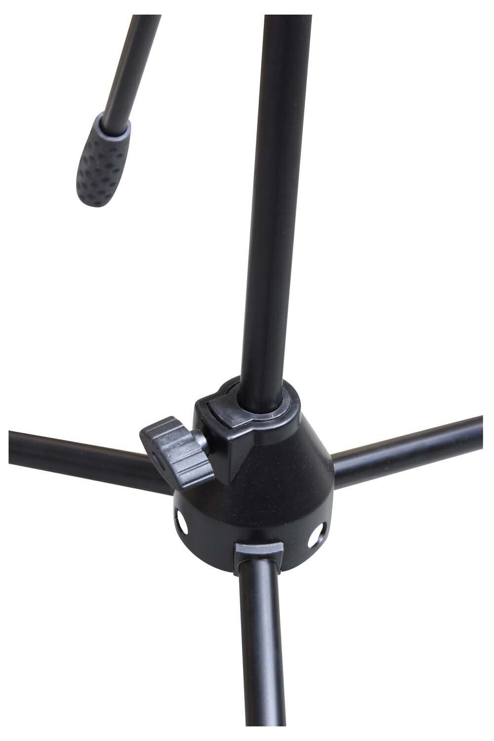 Small black mic stand with telescopic boom, Ideal for bass drums, amplifiers and instruments (not suitable for vocal use).