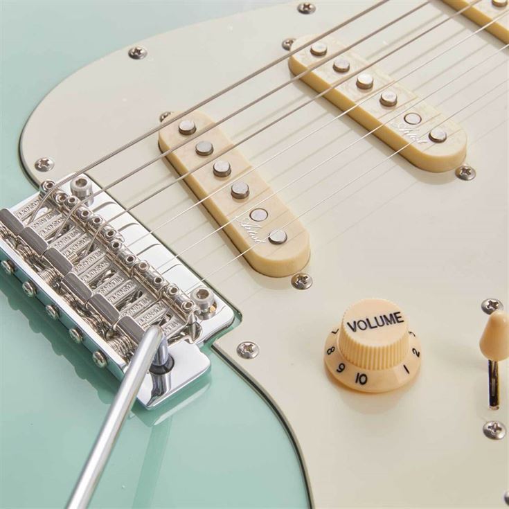 The guitar features a lovely bolt-on roasted maple neck and fretboard, with a bone nut and 22 frets. The ever-popular ST-shaped poplar body with a maple veneer is lightweight, but still keeps that resonance we all love. Featuring the classic 3 single-coil pickup configuration, the intuitive controls make this guitar easy to use for players of any experience level. With a single volume control knob and a single tone control knob, you'll have the power to craft your sound exactly the way you want it.