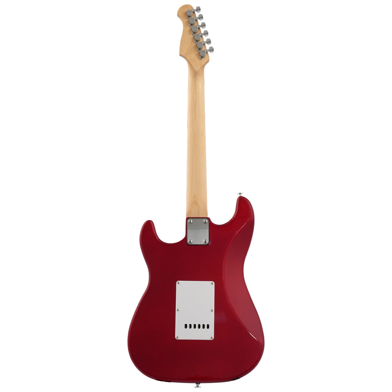 The guitar features a solid Poplar body with a sleek basswood veneer and various colour options, letting you pick which look is right for you!  Featuring a one-piece maple neck, this guitar is built for comfort and ease of play. The C-shape neck profile and 22 frets are perfect for beginners, offering a balanced feel and excellent playability. The eco-rosewood fretboard offers smooth action for both fretting and soloing.