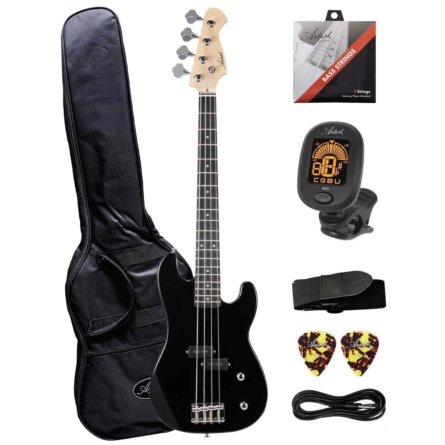 Artist APB34 Black 3/4 Size Bass Guitar w/ Accessories