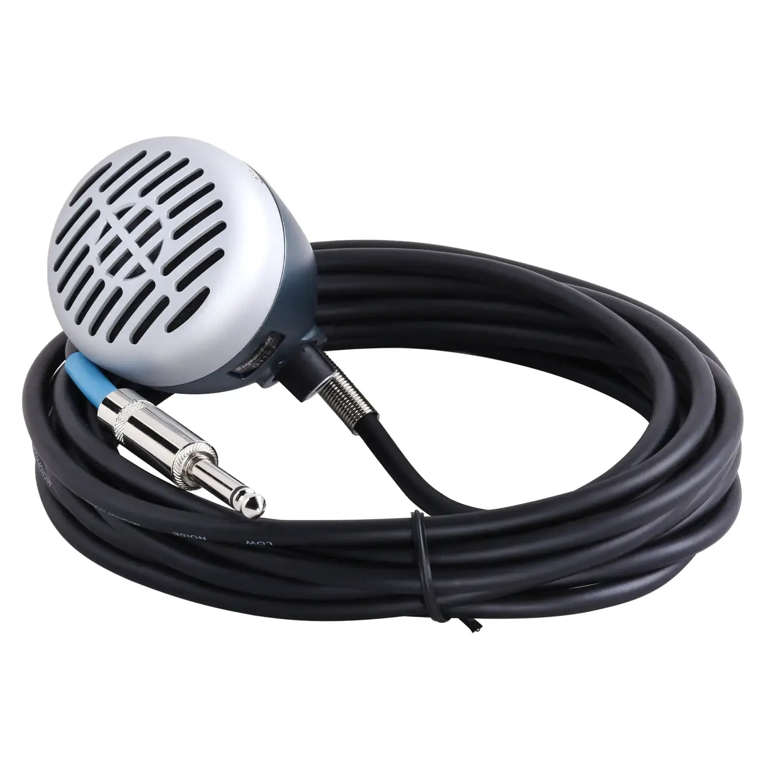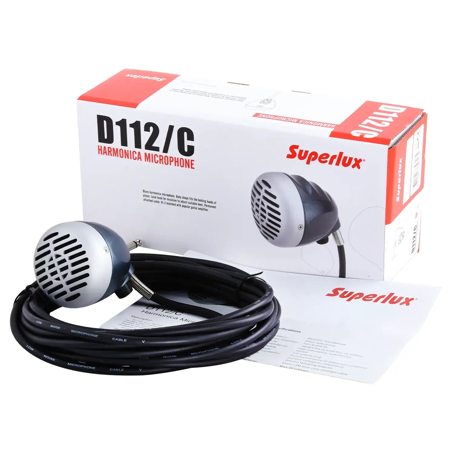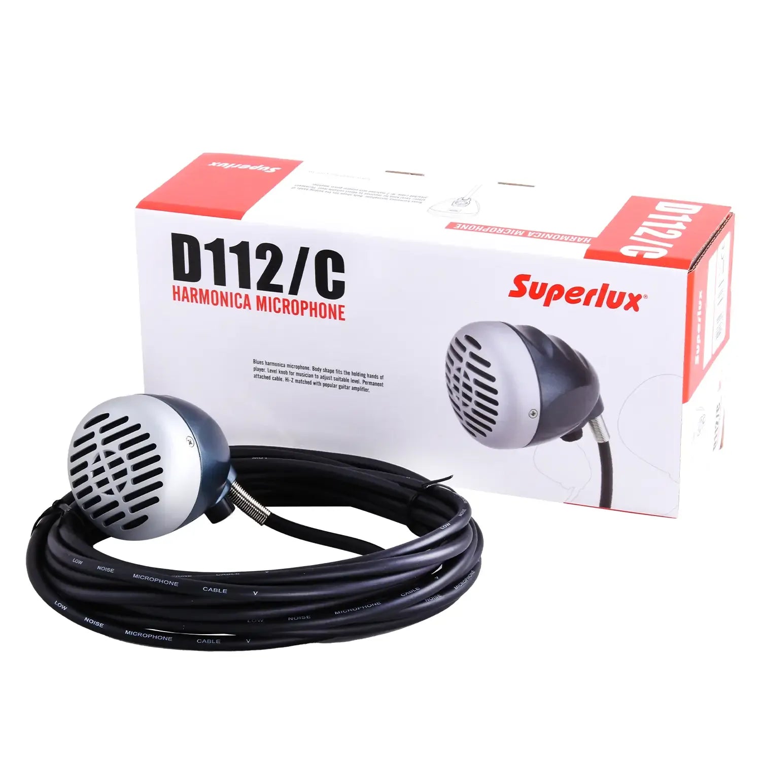The D112 is a new dynamic Hi-impedance blues harmonica microphone with unique curves to fit the hands when playing. It has a level knob for the player to adjust the sound to a suitable level.