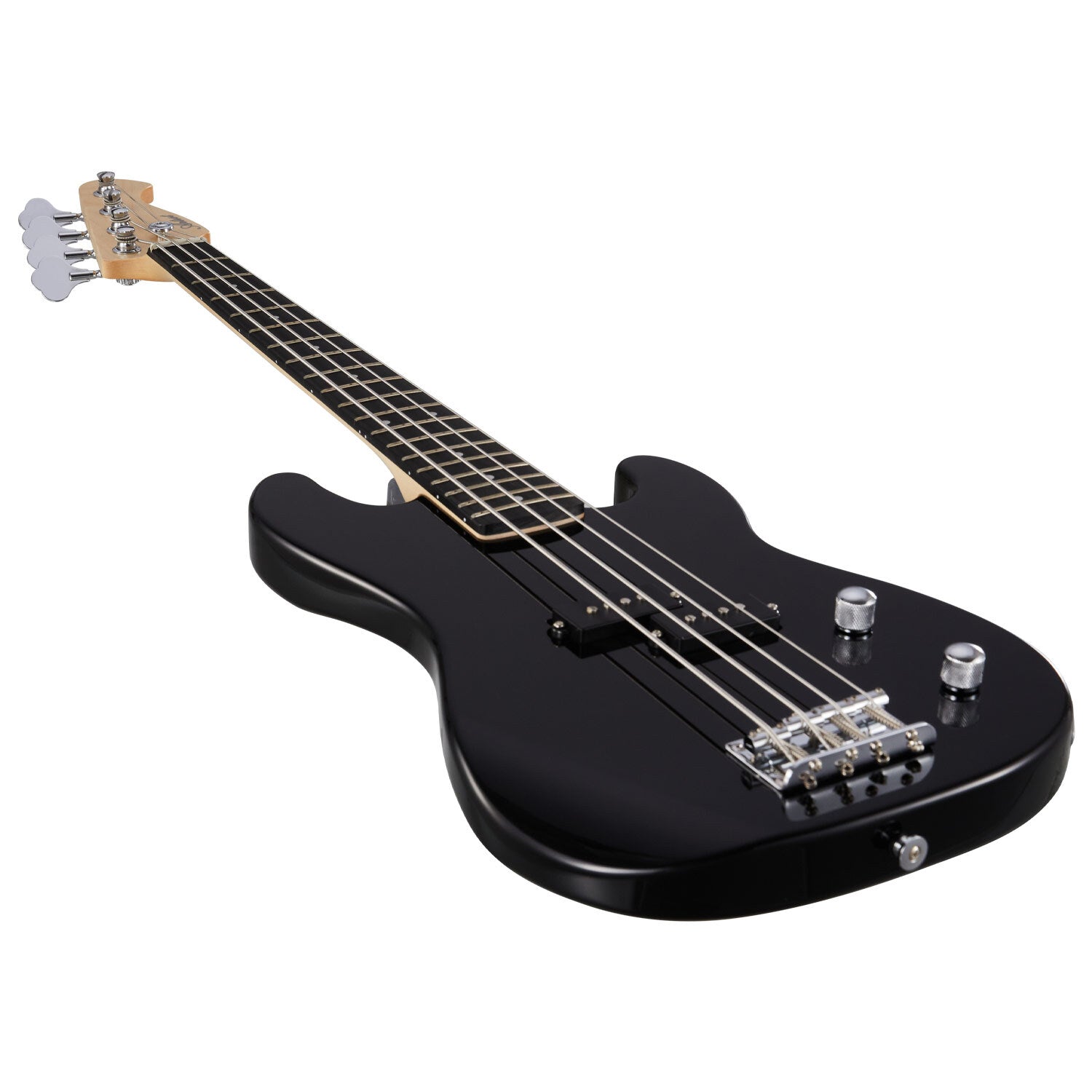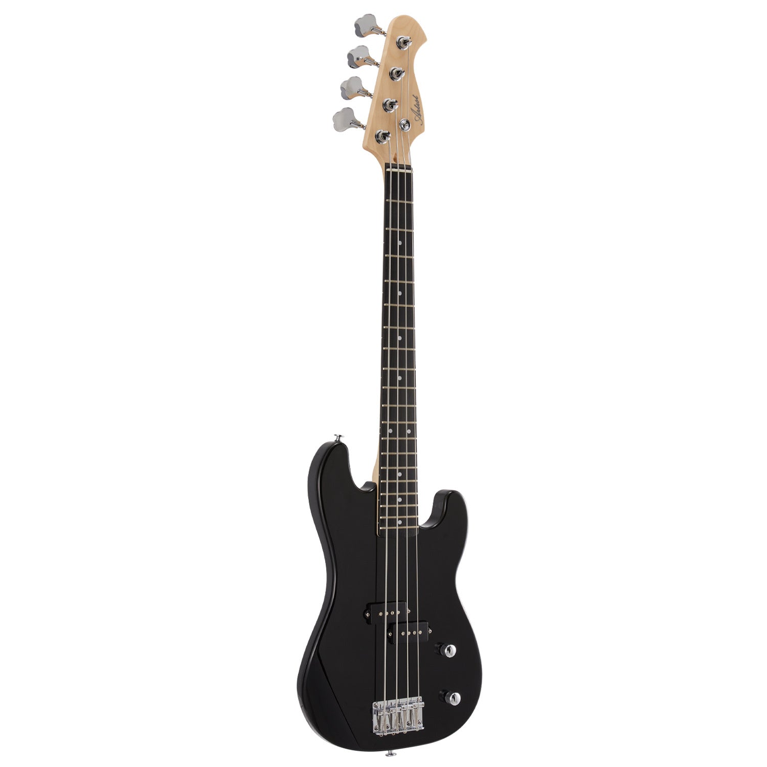 The APB34 Electric Bass is made for players ready to rock, no matter their size! With a sleek black poplar body and basswood veneer, this smaller, solid-body bass is the perfect match for young musicians looking to make their mark. Don’t let its size fool you – the APB34 packs a punch with smooth, punchy tones that will have you playing like a pro in no time.