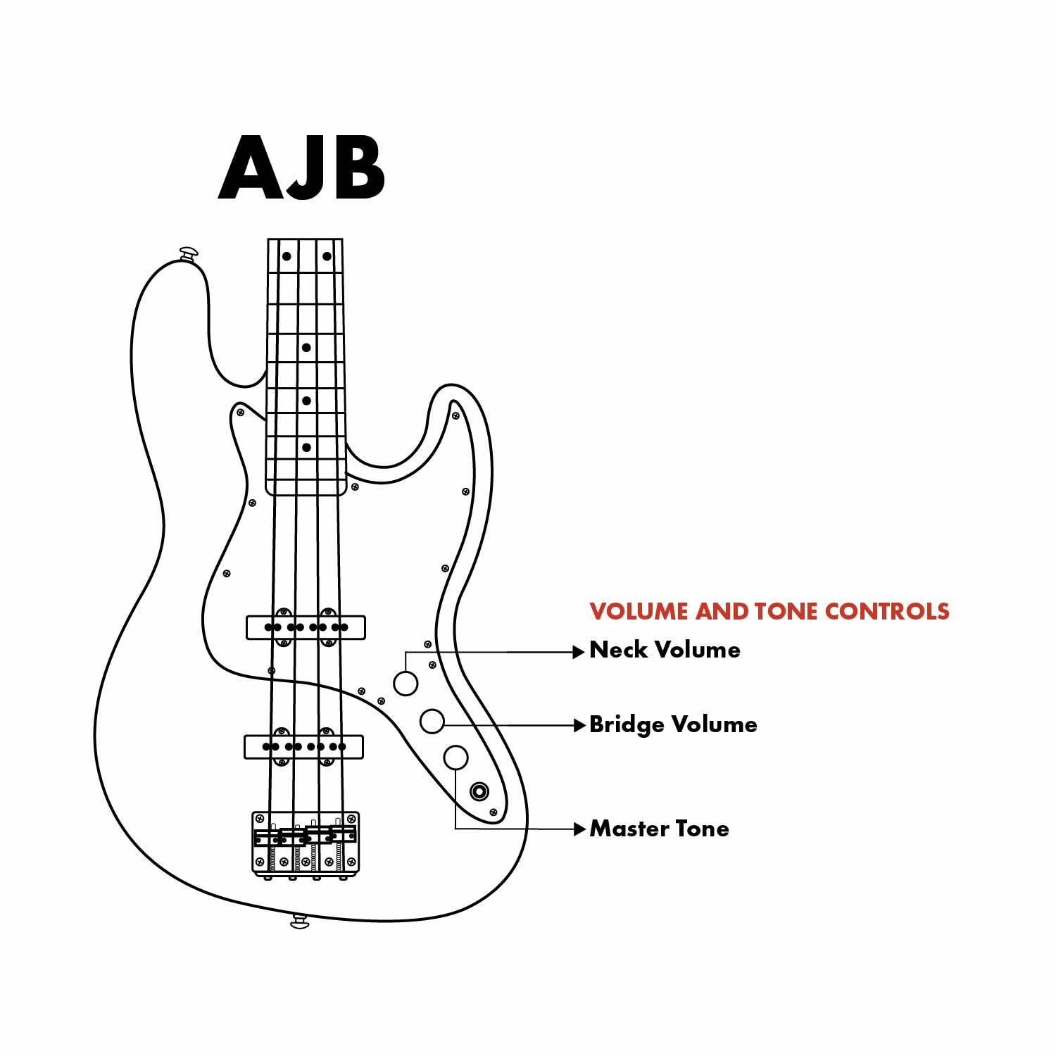 This timeless design is a staple of the world of bass guitars, and our AJBs are perfect for a great many styles and genres of music! Featuring bass single coils in the neck and bridge this guitar can cover a lot of ground and is very comfortable to play. With a volume control for each pickup, you can blend your perfect tone, and fine-tune with the master tone control.
