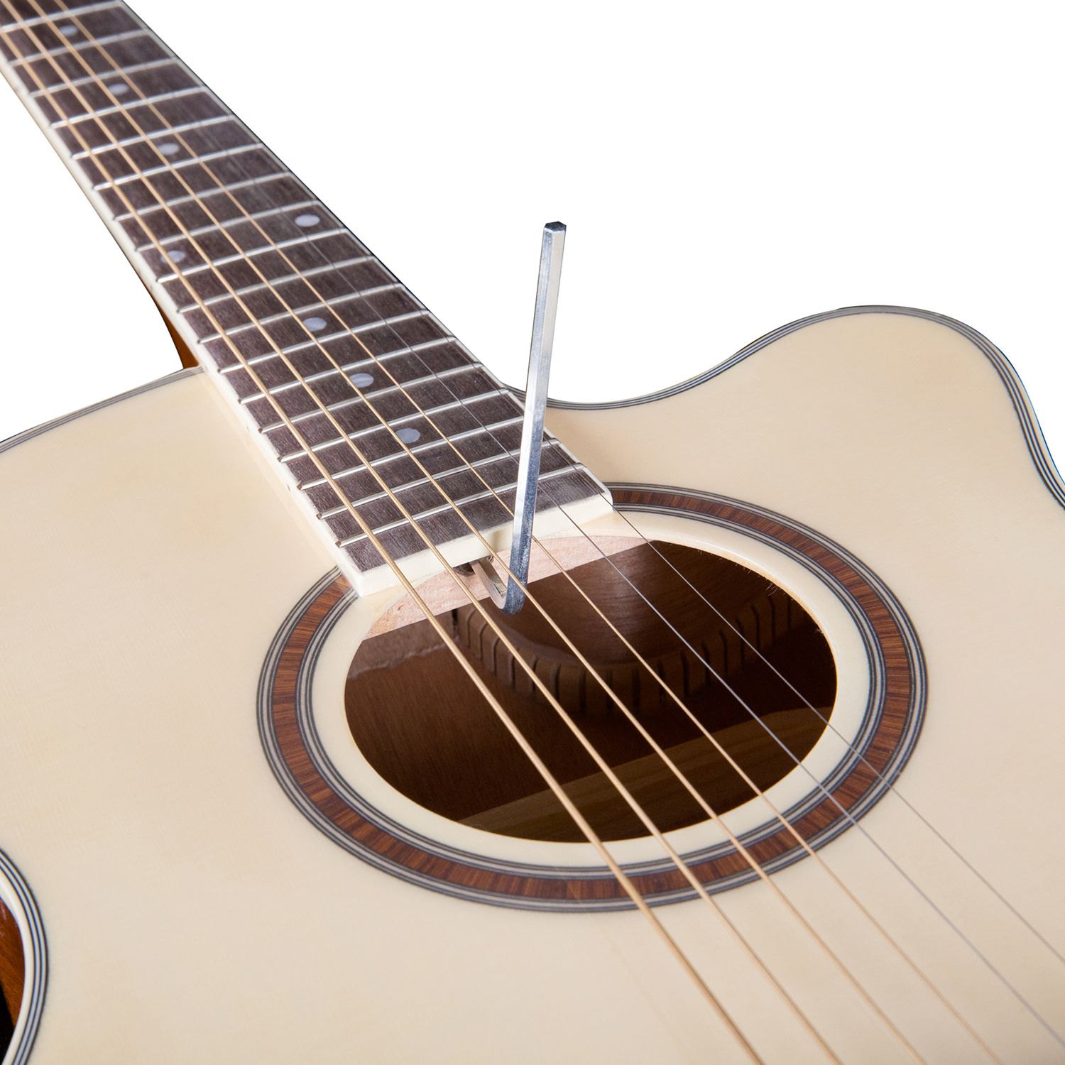 It has a Low String Action (all our guitars are set-up at the factory for optimum beginner playing level). String action is the measurement from the top of the 12th fret to the bottom of the string. This is very important because a guitar with a high action is hard to play, a guitar with too low an action will buzz and sound bad. Artist Guitars are set up at the factory for the optimum level for a beginner.