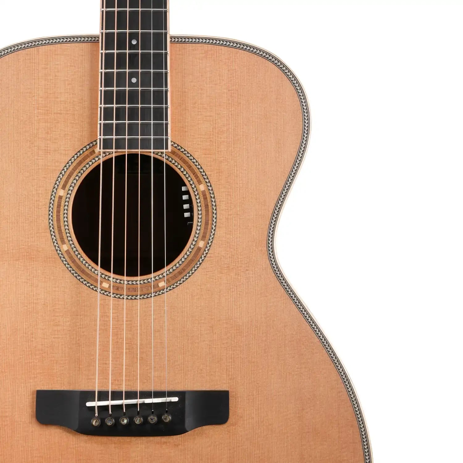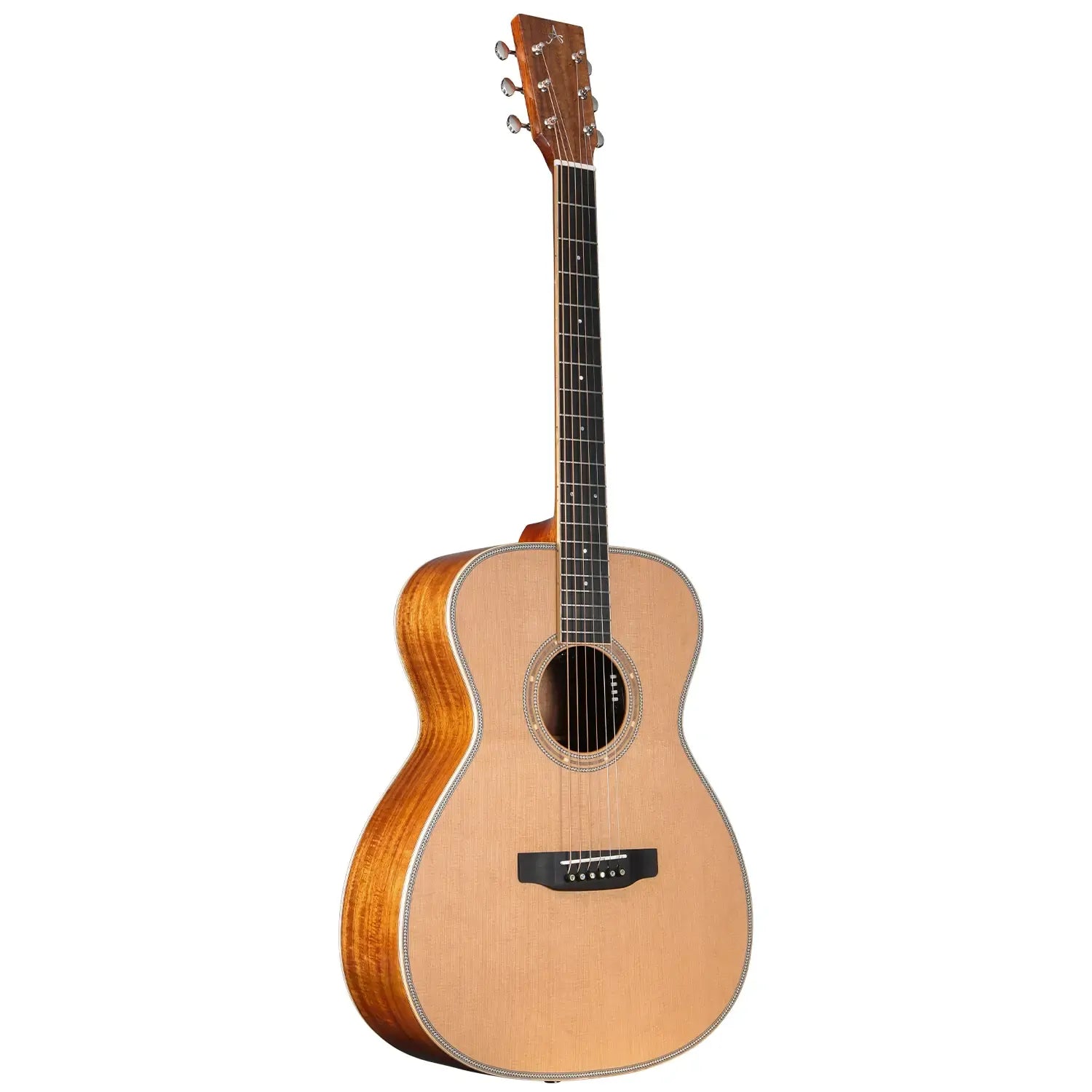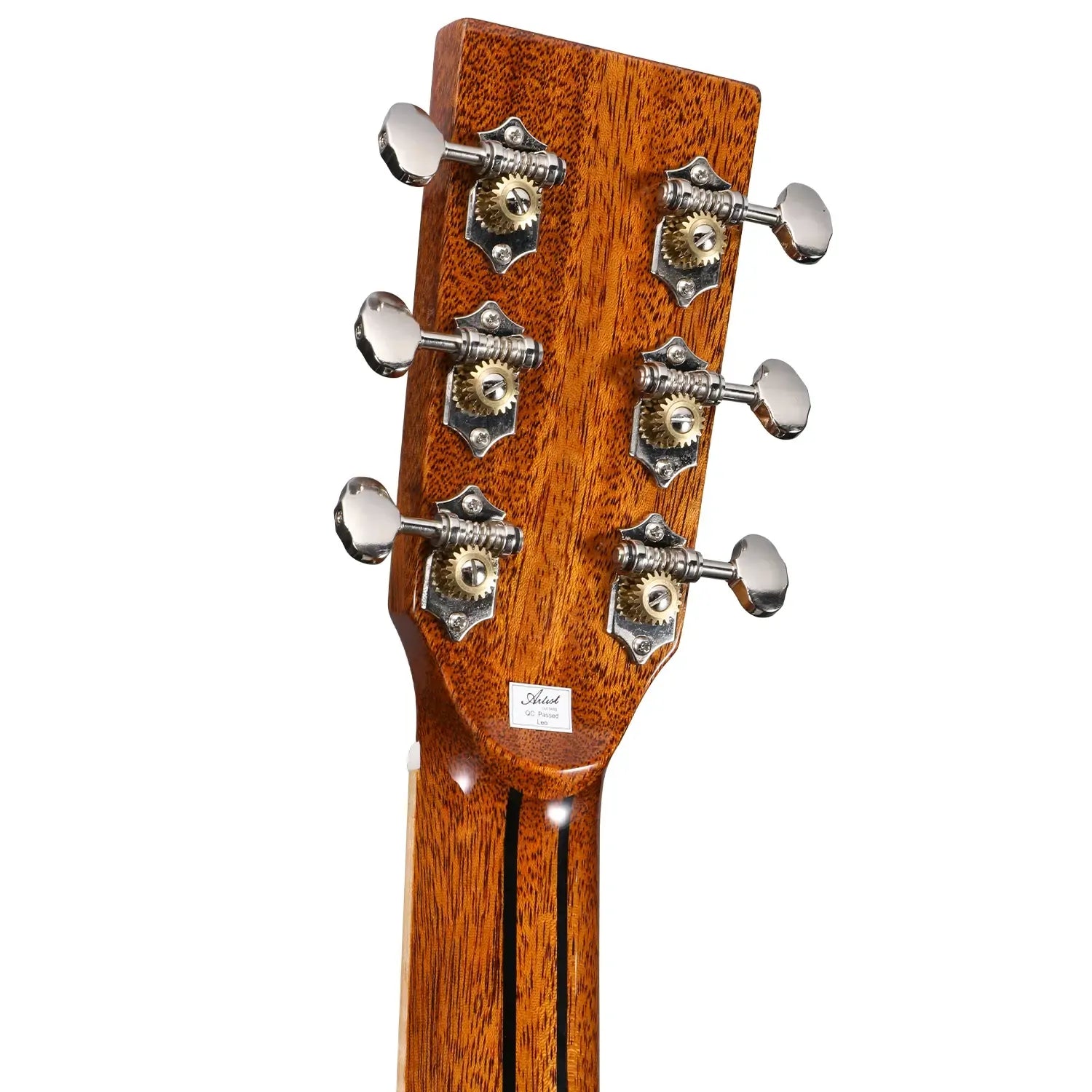 All the bracing on this model has been constructed from the finest woods available. European Spruce was selected for the top bracing, back centre bracing, and reverse kerfing, while African Congo Mahogany braces the solid Acacia back, as the high-grade Ebony bridge is beautifully complemented by Ebony bridge pins. After an intensive and detailed testing process, a Tusq saddle was selected for its unparalleled tonal richness. Offering sweeter, more defined harmonics in the mid-treble frequencies when compared to bone and ivory, alongside a noticeable increase in sustain, the Artist Guitars team has carefully tested every point of contact between the strings and the guitar to ensure maximum resonance and a truly unique, vibrant sound. In combination with a 44.5mm Tusq nut and high-ratio Der Jung tuning machines, the result is a guitar with unparalleled tuning stability and deep resonance across the entire frequency range.
