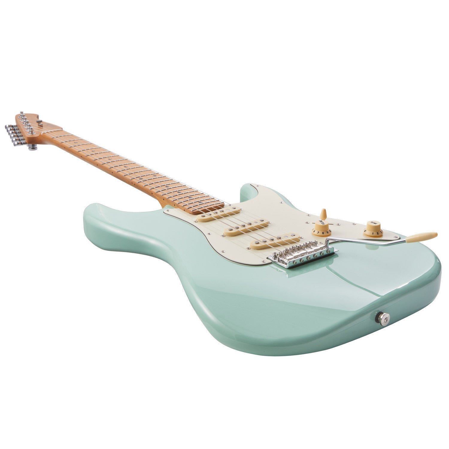The guitar features a lovely bolt-on roasted maple neck and fretboard, with a bone nut and 22 frets. The ever-popular ST-shaped poplar body with a maple veneer is lightweight, but still keeps that resonance we all love. Featuring the classic 3 single-coil pickup configuration, the intuitive controls make this guitar easy to use for players of any experience level. With a single volume control knob and a single tone control knob, you'll have the power to craft your sound exactly the way you want it.