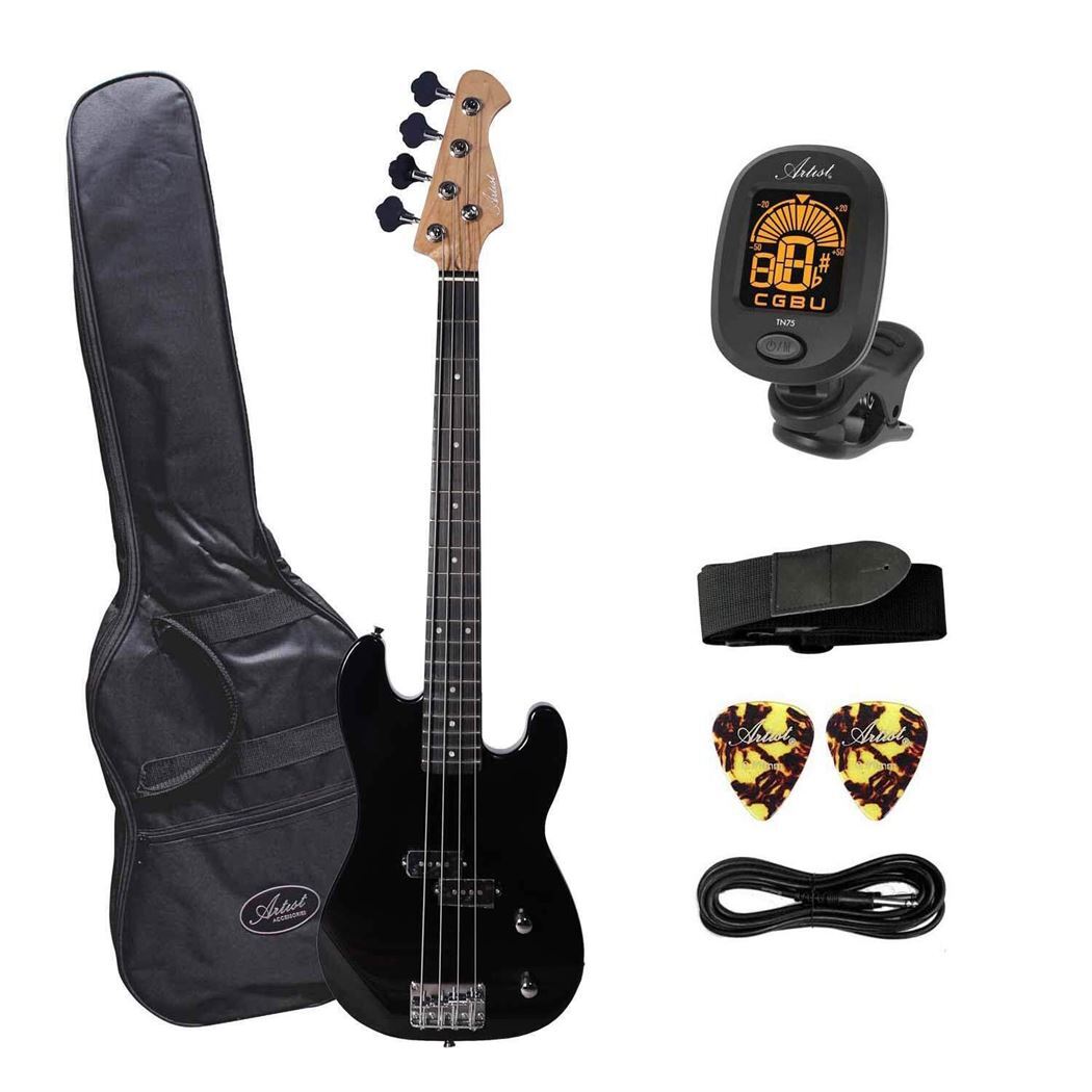 Artist APB34 Black 3/4 Size Bass Guitar w/ Accessories